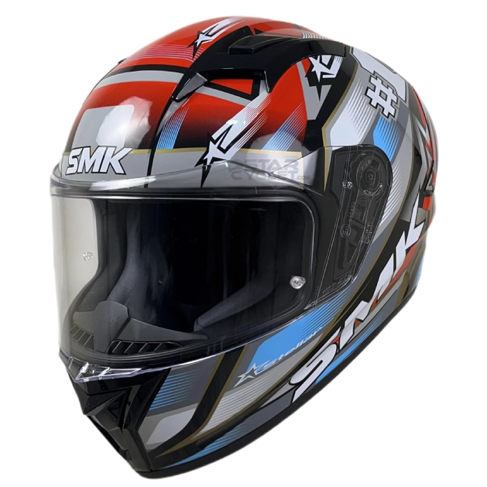 سری STELLAR یک کلاه فک ثابت از برند SMK هست که ضخامت فوم آن به 5 سانتی متر میرسه که نسبت به رقبای چینی که از پوسته 2 الی 3 سانتی‌متری استفاده می‌کنند ضربه‌پذیری بسیار بالاتری را ارائه می‌کند. البته این موضوع باعث حجیم‌تر شدن نسبی کلاه و تا حدودی کمی وزن بالاتر نسبت به رقبای خود پیدا کرده هرچند که وزن کلاه از استانداردهای جهانی خارج نشده است. برند های معتبر کلاه کاسکت در دنیا معمولا برای ارائه سایز بندی از 2 یا 3 شل استفاده می‌کنند در مدل STELLAR سایز L و XL دارای یک شل اختصاصی وسایز XXL یک شل دیگر دارد این در حالیست که کلاه‌های چینی همگی از یک شل استفاده می‌کنند و برای ارائه سایز بندی فقط ابرهای داخل کلاه را کوچک و بزرگ می‌کنند تا هزینه های تولید به حداقل برسانند و با توجه به اینکه پدهای داخلی کلاه چینی بعد از مدتی استفاده آزادتر میشوند و عملا درون کاسه سر بازی میکنند این موضوع خود نه تنها یک خطر جدی برای راکب است بلکه باعث ورود هوا و گرد و غبار به درون کلاه شما می‌شود.طرح‌های SMK استلار نیز بسیار متنوع و همه پسند است و برای یک موتورباز استفاده از آن بسیار جذاب خواهد بود.