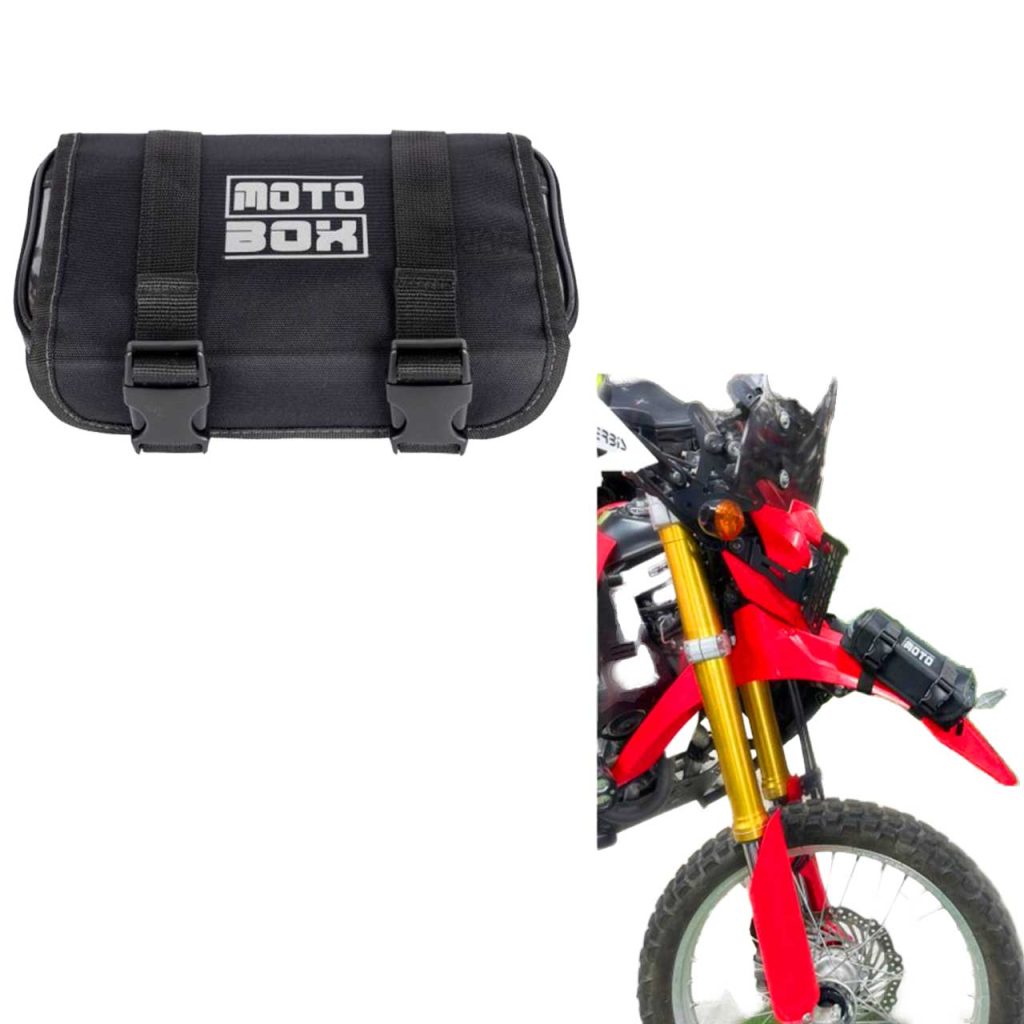 | سایر مشخصات | قابل نصب روی گلگیر جلوی موتورسیکلتهای اندرو، کراس وتریل;مناسب حمل وسایل پنچرگیری وابزارهای مورد نیاز;ابعاد: ۲۴*۱۵*۷ سانتی متر;سیستم قفل شدن درب سه گانه: زیپ، چسب دو طرفه پارچهای و کمربندهای دارای خرچنگی کیفیت درجه یک;دو جیب بزرگ داخلی و دوجیب پاکتی بیرونی;لوگوی انعکاسی موتوباکس;بستن از طریق دوکمربند سایزشونده مستحکم |