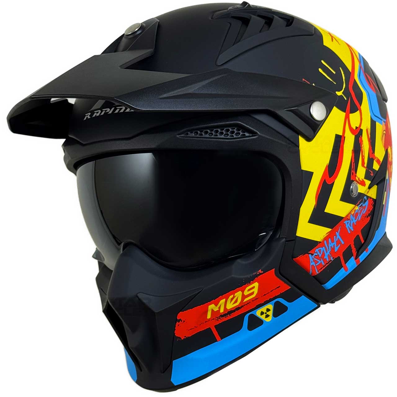 کلاه کاسکت فک جدا RAPIDO مدل 890 MATT-FLUO-BLUE-YELLOW-RED