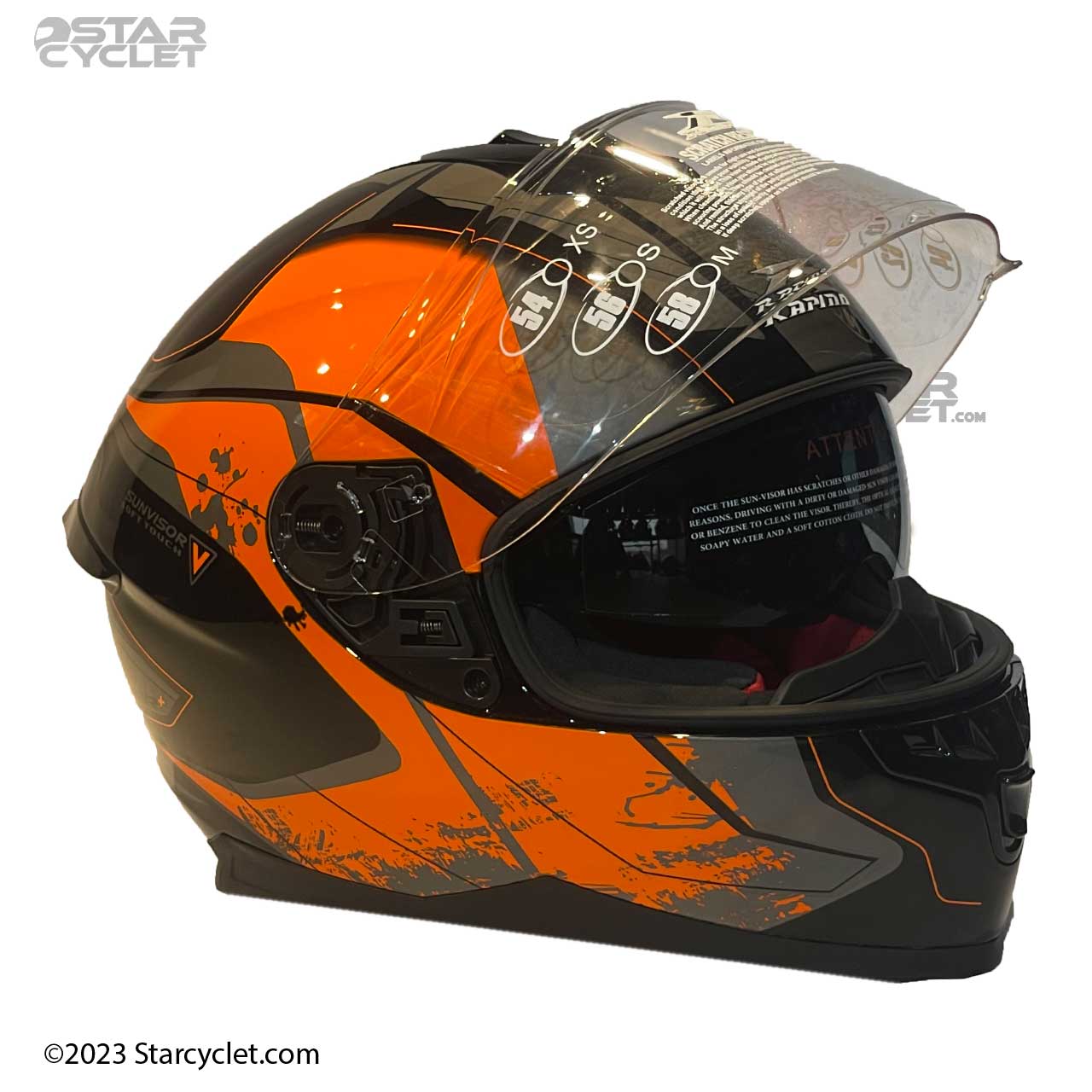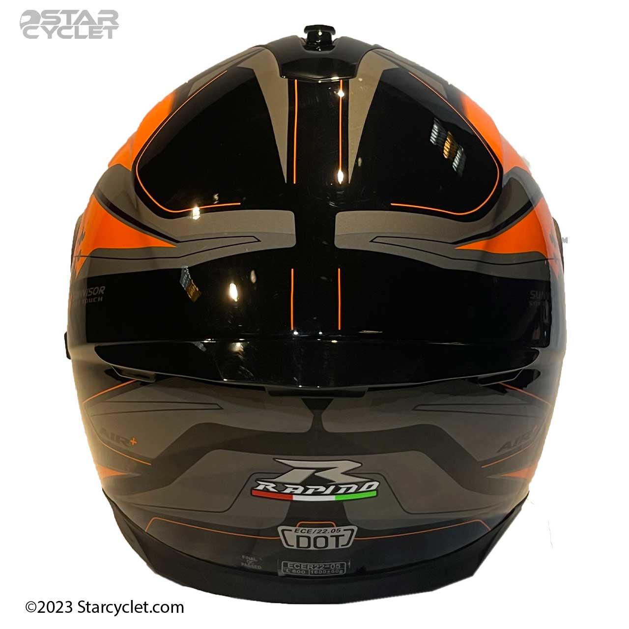 رنگ و طرح کلاه کاسکت راپیدو مدل 967-GREYOG برای انواع موتور مخصوصا موتورسیکلتهای نارنجی رنگ مانند کی تی ام بسیار عالی است.