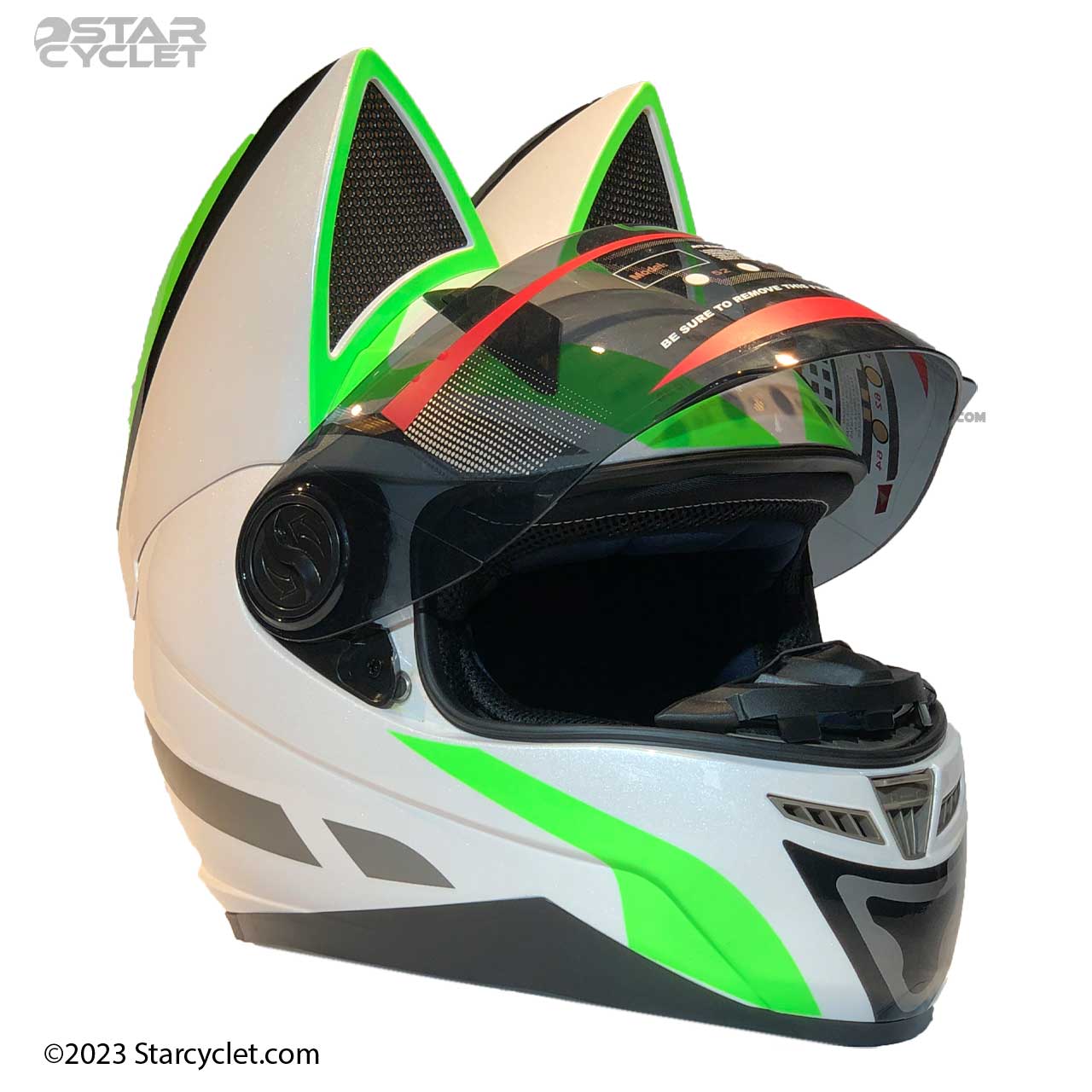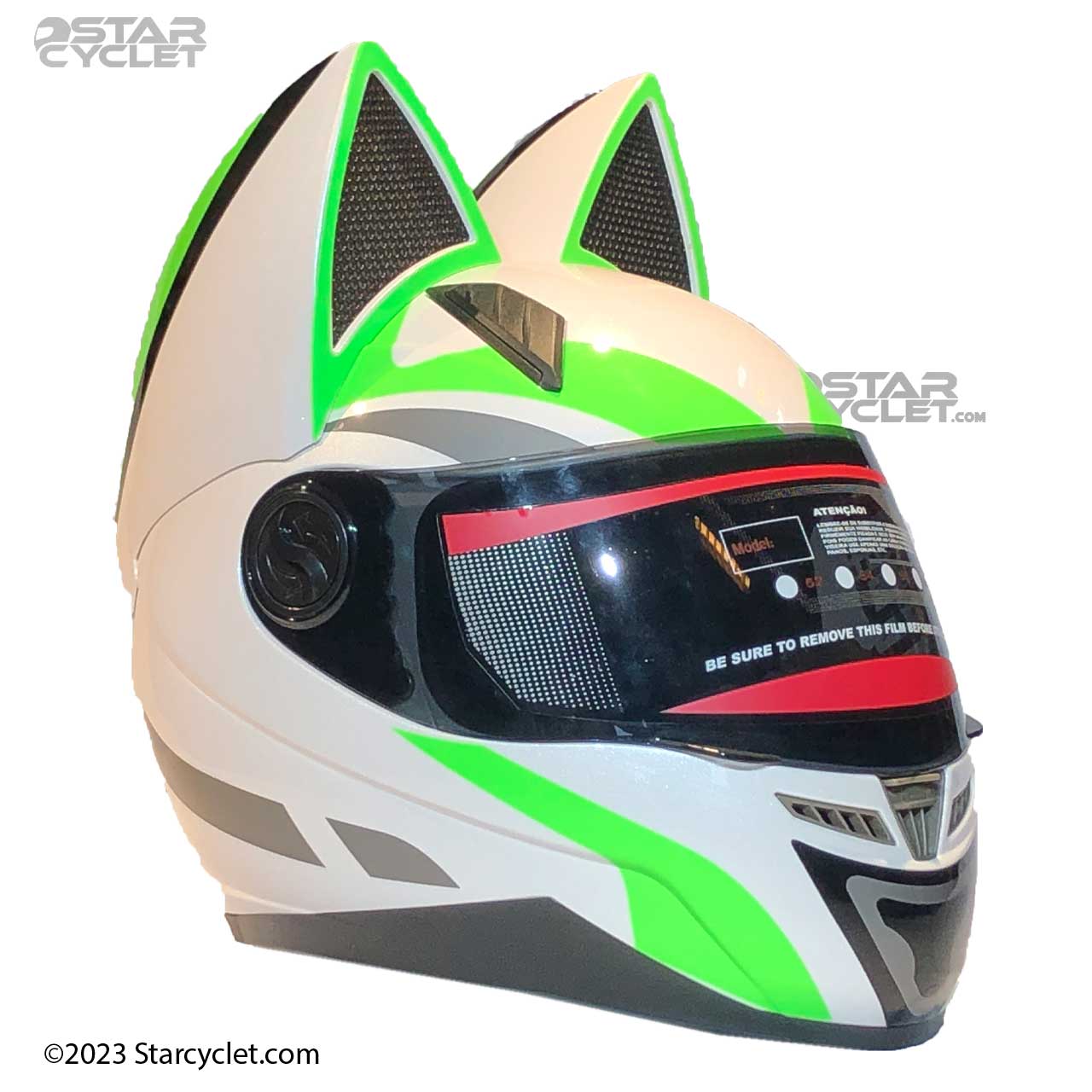 کلاه کاسکت فک ثابت نوترینوس مدل WHT-GREEN طرح گوش گربه دارد که آن را بسیار جذاب برای دختران کرده است. مشاهده قیمت این کلاه ایمنی در استارسیکلت