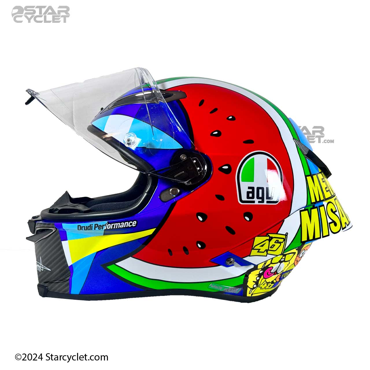 خرید و قیمت کلاه کاسکت فک ثابت طرح AGV مدل WATERMELONE طرح بسیار زیبایی دارد و برای امور سبک شهری با بودجه زیر ۱۰ میلیون تومان پیشنهاد می‌شود.