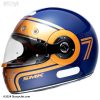 مدل Retro SEVEN با ترکیب رنگ آبی و طلایی و طراحی الهامگرفته از کلاههای دهههای گذشته، حس نوستالژی و اصالت را به کاربران منتقل میکند. خطوط نرم و المانهای ساده روی بدنه کلاه، ظاهری زیبا و منحصر به فرد به آن بخشیده است. عدد 7 که به صورت برجسته روی کلاه درج شده، شخصیت خاصی به این طراحی میدهد. این کلاه به طور خاص برای کسانی که موتورسیکلتهای کلاسیک و کافهریسر را ترجیح میدهند، طراحی شده است.