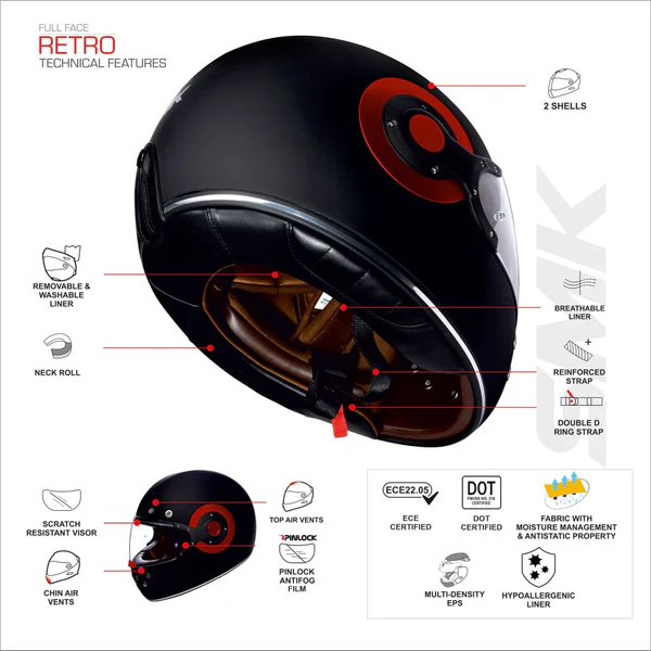 کلاه کاسکت فک ثابت SMK رترو مدل SEVEN (ma260)