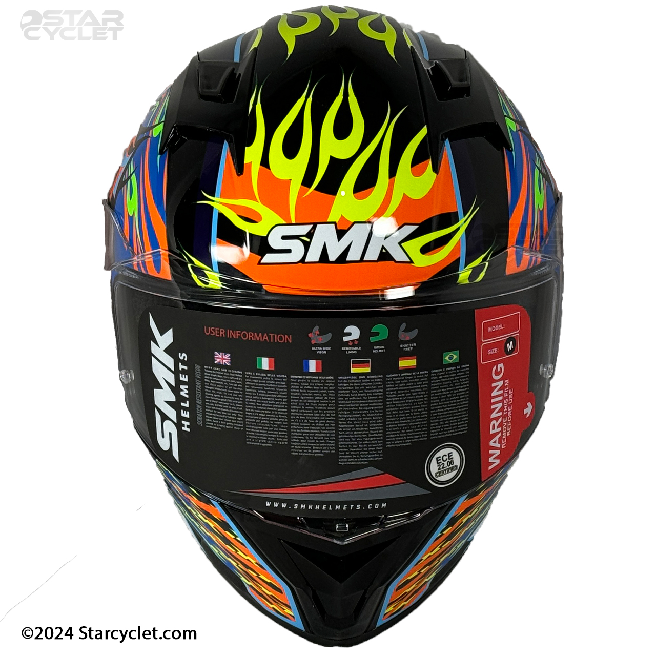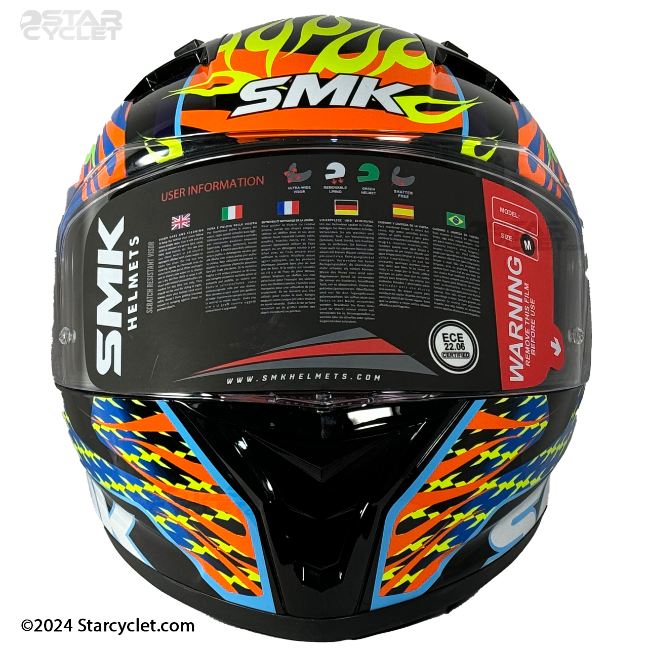 سری STELLAR یک کلاه فک ثابت از برند SMK هست که ضخامت فوم آن به 5 سانتی متر میرسه که نسبت به رقبای چینی که از پوسته 2 الی 3 سانتی‌متری استفاده می‌کنند ضربه‌پذیری بسیار بالاتری را ارائه می‌کند. البته این موضوع باعث حجیم‌تر شدن نسبی کلاه و تا حدودی کمی وزن بالاتر نسبت به رقبای خود پیدا کرده هرچند که وزن کلاه از استانداردهای جهانی خارج نشده است. برند های معتبر کلاه کاسکت در دنیا معمولا برای ارائه سایز بندی از 2 یا 3 شل استفاده می‌کنند در مدل STELLAR سایز L و XL دارای یک شل اختصاصی وسایز XXL یک شل دیگر دارد این در حالیست که کلاه‌های چینی همگی از یک شل استفاده می‌کنند و برای ارائه سایز بندی فقط ابرهای داخل کلاه را کوچک و بزرگ می‌کنند تا هزینه های تولید به حداقل برسانند و با توجه به اینکه پدهای داخلی کلاه چینی بعد از مدتی استفاده آزادتر میشوند و عملا درون کاسه سر بازی میکنند این موضوع خود نه تنها یک خطر جدی برای راکب است بلکه باعث ورود هوا و گرد و غبار به درون کلاه شما می‌شود.طرح‌های SMK استلار نیز بسیار متنوع و همه پسند است و برای یک موتورباز استفاده از آن بسیار جذاب خواهد بود.