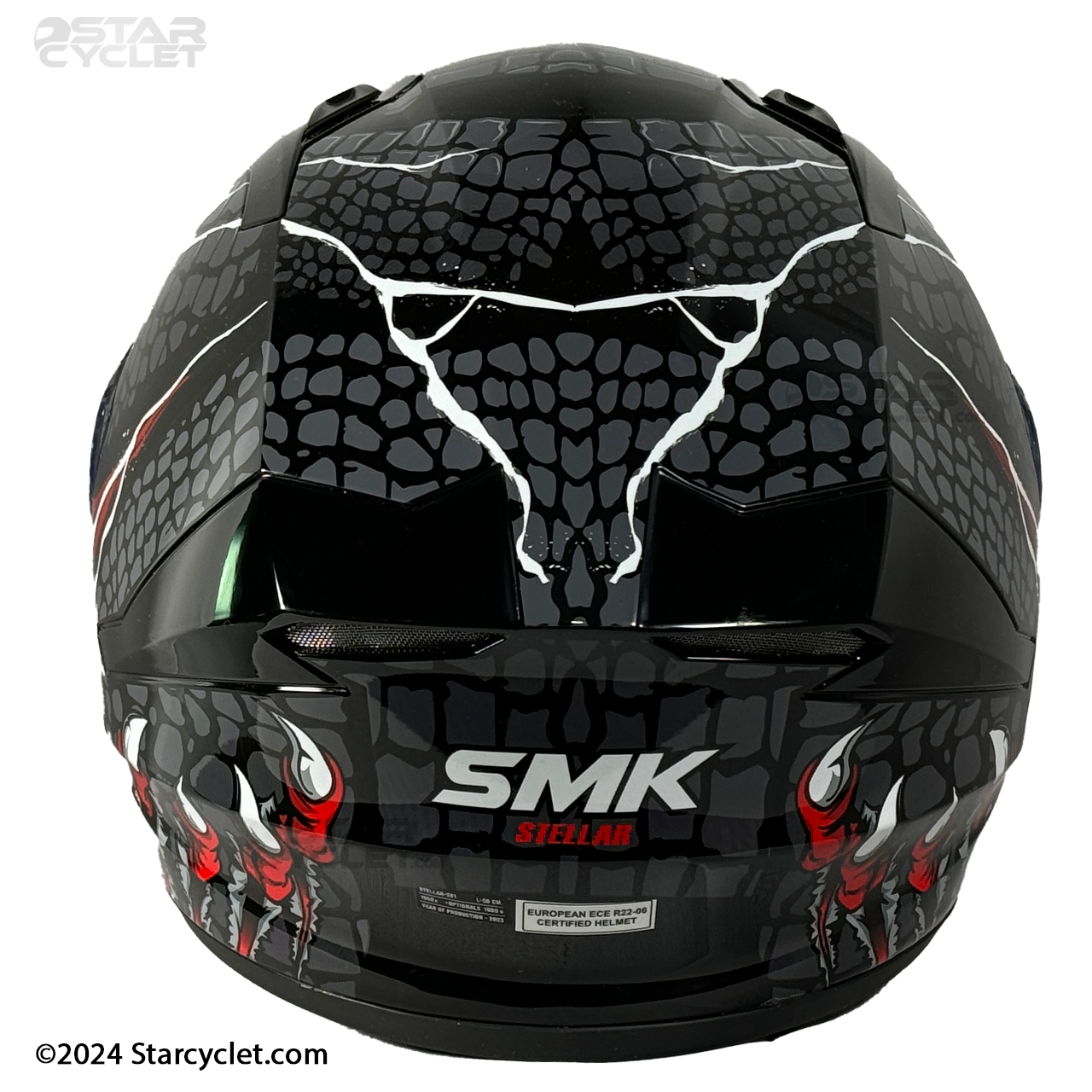 سری STELLAR یک کلاه فک ثابت از برند SMK هست که ضخامت فوم آن به 5 سانتی متر میرسه که نسبت به رقبای چینی که از پوسته 2 الی 3 سانتی‌متری استفاده می‌کنند ضربه‌پذیری بسیار بالاتری را ارائه می‌کند. البته این موضوع باعث حجیم‌تر شدن نسبی کلاه و تا حدودی کمی وزن بالاتر نسبت به رقبای خود پیدا کرده هرچند که وزن کلاه از استانداردهای جهانی خارج نشده است. برند های معتبر کلاه کاسکت در دنیا معمولا برای ارائه سایز بندی از 2 یا 3 شل استفاده می‌کنند در مدل STELLAR سایز L و XL دارای یک شل اختصاصی وسایز XXL یک شل دیگر دارد این در حالیست که کلاه‌های چینی همگی از یک شل استفاده می‌کنند و برای ارائه سایز بندی فقط ابرهای داخل کلاه را کوچک و بزرگ می‌کنند تا هزینه های تولید به حداقل برسانند و با توجه به اینکه پدهای داخلی کلاه چینی بعد از مدتی استفاده آزادتر میشوند و عملا درون کاسه سر بازی میکنند این موضوع خود نه تنها یک خطر جدی برای راکب است بلکه باعث ورود هوا و گرد و غبار به درون کلاه شما می‌شود.طرح‌های SMK استلار نیز بسیار متنوع و همه پسند است و برای یک موتورباز استفاده از آن بسیار جذاب خواهد بود.