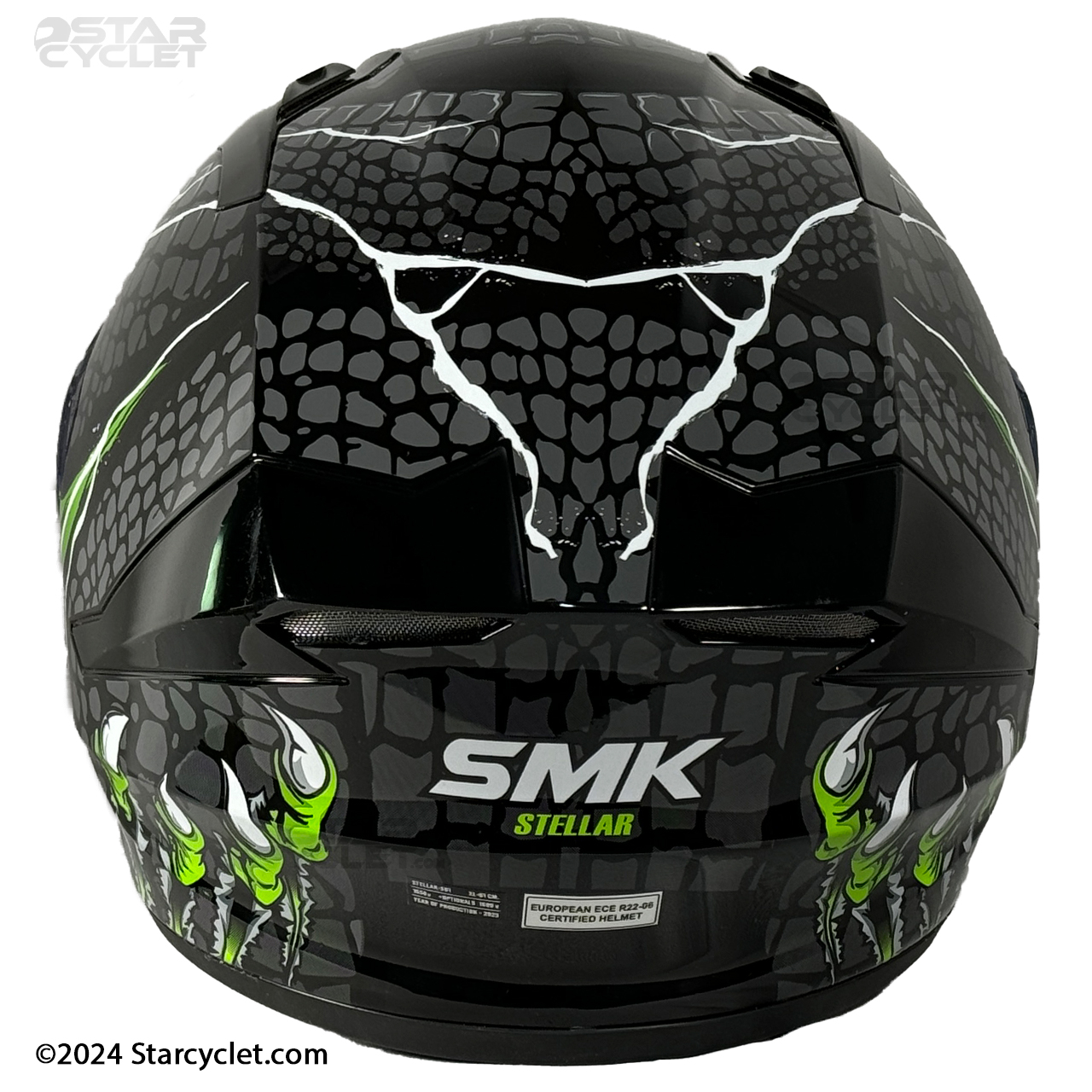 سری STELLAR یک کلاه فک ثابت از برند SMK هست که ضخامت فوم آن به 5 سانتی متر میرسه که نسبت به رقبای چینی که از پوسته 2 الی 3 سانتی‌متری استفاده می‌کنند ضربه‌پذیری بسیار بالاتری را ارائه می‌کند. البته این موضوع باعث حجیم‌تر شدن نسبی کلاه و تا حدودی کمی وزن بالاتر نسبت به رقبای خود پیدا کرده هرچند که وزن کلاه از استانداردهای جهانی خارج نشده است. برند های معتبر کلاه کاسکت در دنیا معمولا برای ارائه سایز بندی از 2 یا 3 شل استفاده می‌کنند در مدل STELLAR سایز L و XL دارای یک شل اختصاصی وسایز XXL یک شل دیگر دارد این در حالیست که کلاه‌های چینی همگی از یک شل استفاده می‌کنند و برای ارائه سایز بندی فقط ابرهای داخل کلاه را کوچک و بزرگ می‌کنند تا هزینه های تولید به حداقل برسانند و با توجه به اینکه پدهای داخلی کلاه چینی بعد از مدتی استفاده آزادتر میشوند و عملا درون کاسه سر بازی میکنند این موضوع خود نه تنها یک خطر جدی برای راکب است بلکه باعث ورود هوا و گرد و غبار به درون کلاه شما می‌شود.طرح‌های SMK استلار نیز بسیار متنوع و همه پسند است و برای یک موتورباز استفاده از آن بسیار جذاب خواهد بود.