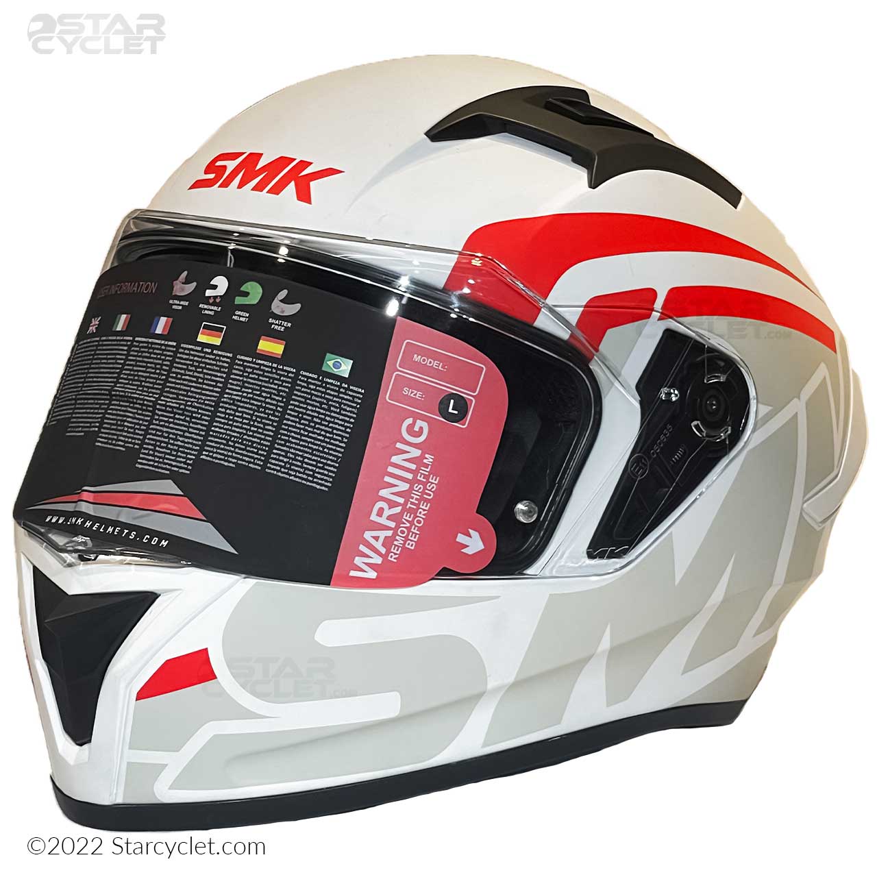 سری STELLAR یک کلاه فک ثابت از برند SMK هست که ضخامت فوم آن به 5 سانتی متر میرسه که نسبت به رقبای چینی که از پوسته 2 الی 3 سانتیمتری استفاده میکنند ضربهپذیری بسیار بالاتری را ارائه میکند. البته این موضوع باعث حجیمتر شدن نسبی کلاه و تا حدودی کمی وزن بالاتر نسبت به رقبای خود پیدا کرده هرچند که وزن کلاه از استانداردهای جهانی خارج نشده است. برند های معتبر کلاه کاسکت در دنیا معمولا برای ارائه سایز بندی از 2 یا 3 شل استفاده میکنند در مدل STELLAR سایز L و XL دارای یک شل اختصاصی وسایز XXL یک شل دیگر دارد این در حالیست که کلاههای چینی همگی از یک شل استفاده میکنند و برای ارائه سایز بندی فقط ابرهای داخل کلاه را کوچک و بزرگ میکنند تا هزینه های تولید به حداقل برسانند و با توجه به اینکه پدهای داخلی کلاه چینی بعد از مدتی استفاده آزادتر میشوند و عملا درون کاسه سر بازی میکنند این موضوع خود نه تنها یک خطر جدی برای راکب است بلکه باعث ورود هوا و گرد و غبار به درون کلاه شما میشود.طرحهای SMK استلار نیز بسیار متنوع و همه پسند است و برای یک موتورباز استفاده از آن بسیار جذاب خواهد بود.
