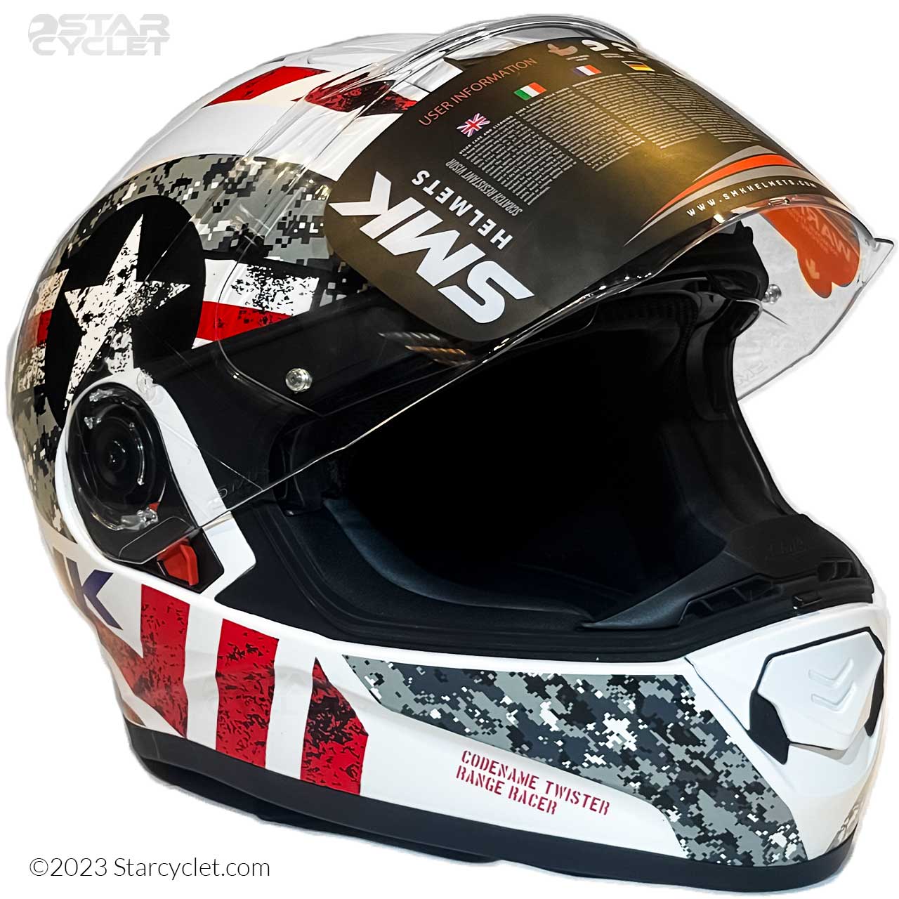 سری TWISTER یکی از مدلهایی میباشد که شرکت SMK مکانی برای نصب پنل بلوتوث فابریک خود این شرکت را بر روی پوسته بیرونی و درون پدهای داخلی این کلاه تعبیه کرده است که شما میتوانید با خرید و نصب این پنل بلوتوث با توجه به کیفیت بالای صدای موزیک و مکالمه این دستگاه در حین رانندگی از صداهای مزاحم ترافیک شهری در امان باشید و بتوانید با خطر کمتری به تماس های ضروری خود حین رانندگی پاسخ دهید.از دیگر ویژگیهای سری TWISTER میتوان به پد تنفسی و ضد حساسیت، عینک یووی، طلق ضد بخار و کنالهای هواکشی عالی اشاره کرد که در کمتر کلاه کاسکتی با این رنج قیمت شاهد آن هستیم.از لحاظ ایمنی نیز سری تویستر بسیار با کیفیت است و برعکس برندهای دیگر که ضخامت لایه بیرونی آنان سه سانت است در این کلاه ضخامت این لایه پنج سانت است که ایمنی این کلاه کاسکت را 70 تا 80 درصد بالا میبرد.