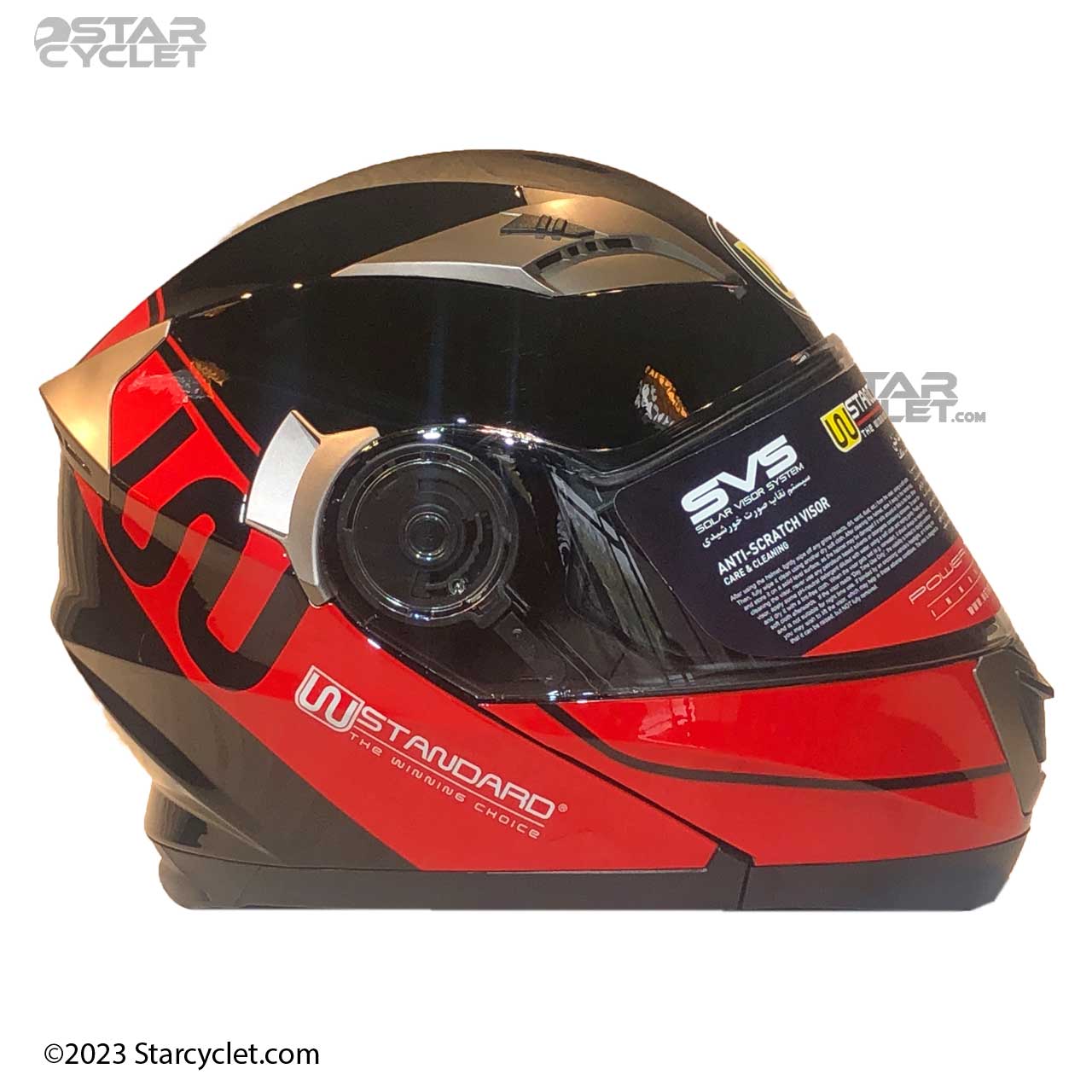 کلاه ایمنی فک متحرک دبلیو استاندارد مدل RED-BLK دارای رنگ قرمز است و استاندارد DOT دارد.