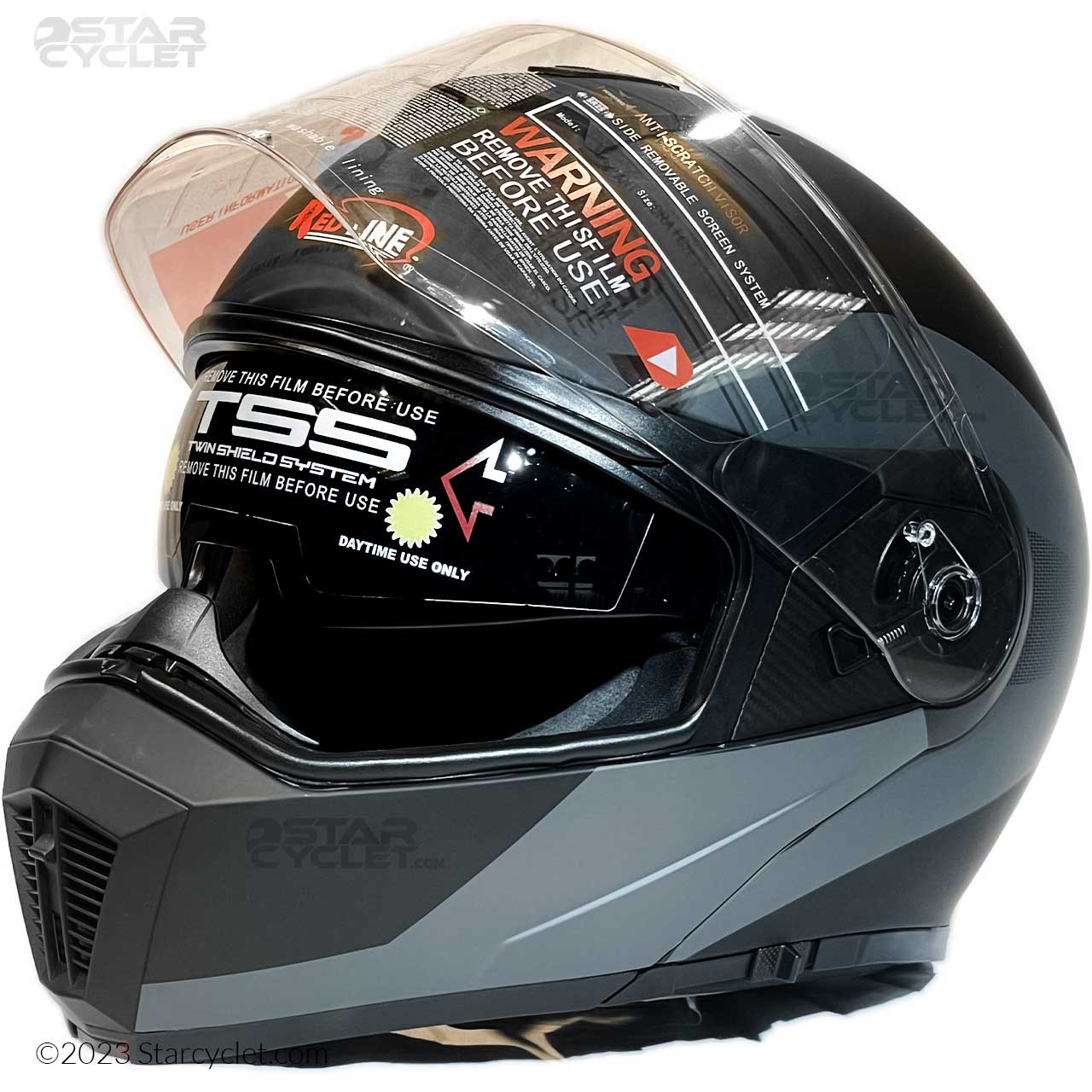 کلاه کاسکت ردلاین مدل BLK-GRY-NOPO دارای طراحی جذابی است. مزیت این کلاه نسبت به رقبای خود این است که فوم ضربهگیر تا جلوی فک را پوشش میدهد. انحنای طلق این کلاه باعث شده نفوذ باد به قسمت سر راکب حداقلی باشد.