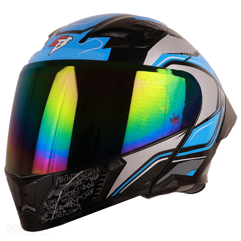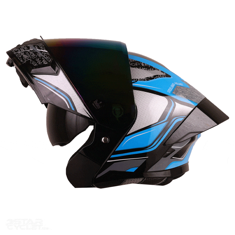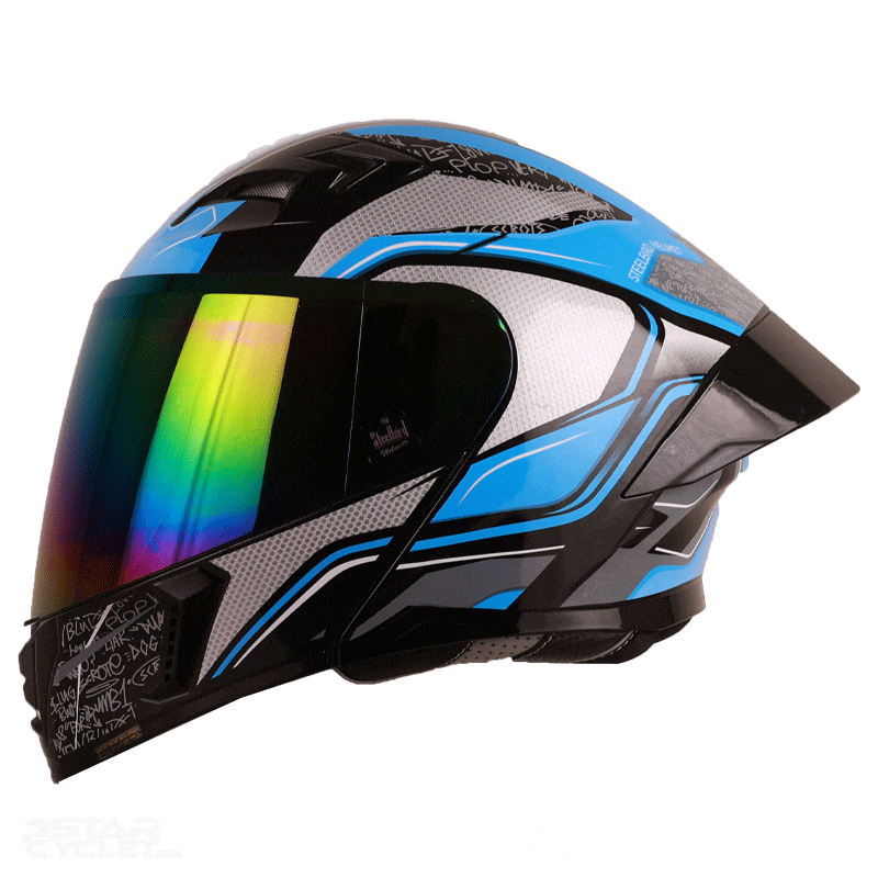 کلاه کاسکت فک متحرک استیل برد مدل BLUE WHITE