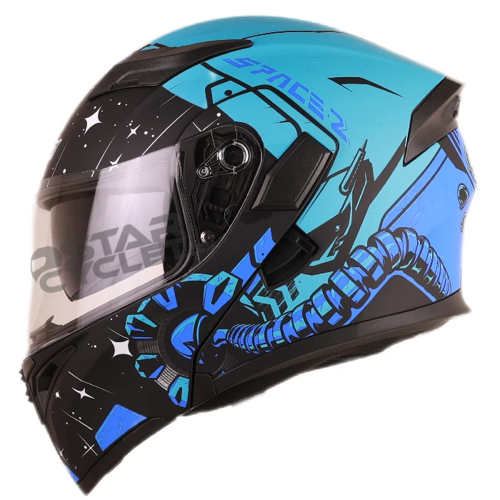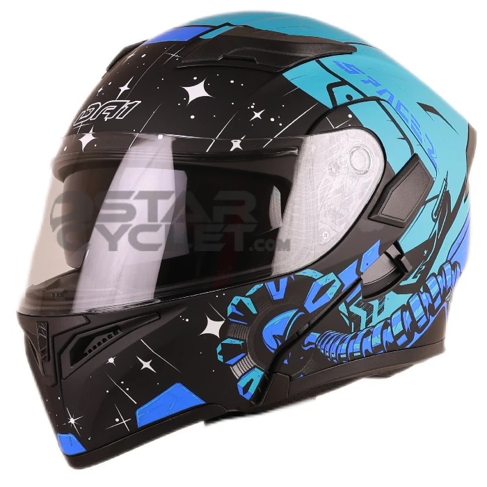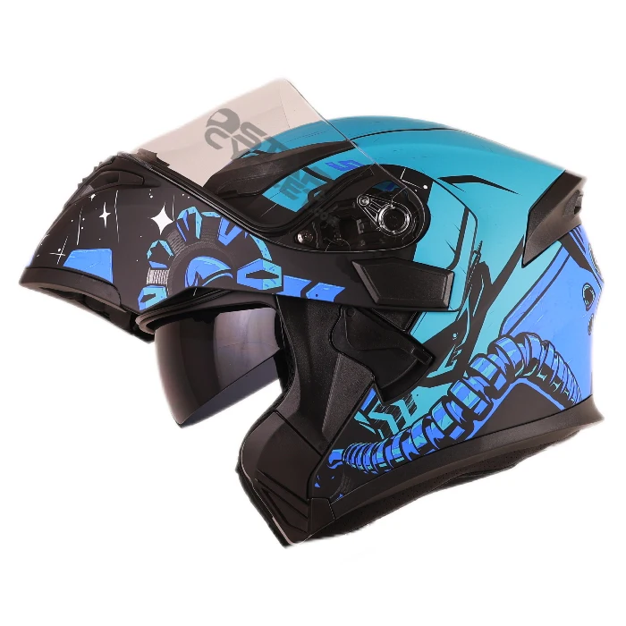 کلاه کاسکت فک متحرک DA1 مدل 101 MATT GRAY GRAPHIC BLUE