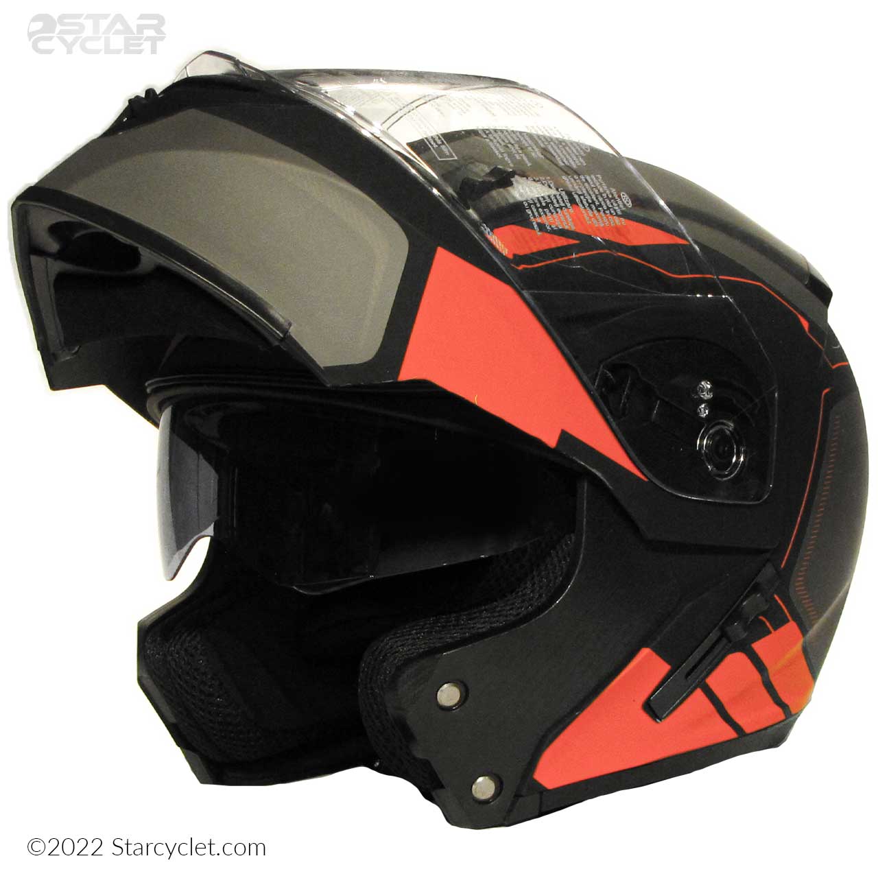توضیحاتدارای پد گردن دارای , پدمتحرک قابل شست‌وشو , دارای پد گردن و چانه , داری طلق شفاف پلی کربنات برای جلوگیری از کاهش دید راننده , دارای عینک دودیUV با قابلیت جمع شدن , دارای کاور پارچه‌ای