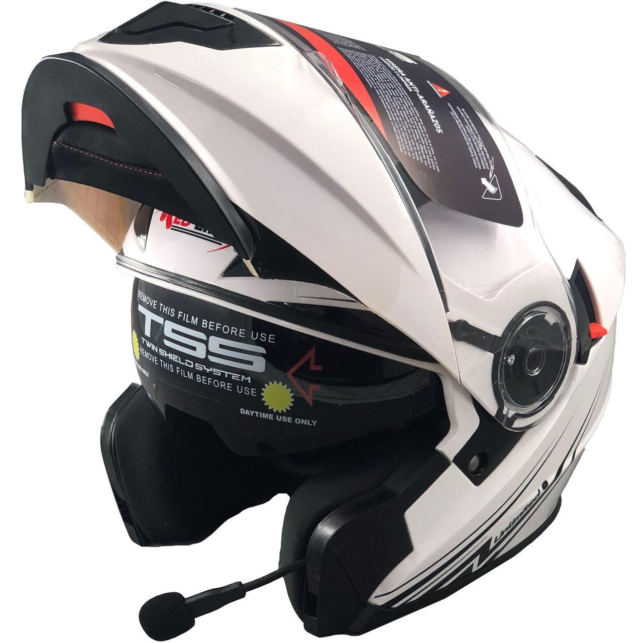 | سایر مشخصات | دارای هنذفری و بلوتوث به همراه سیم شارژر و دفترچه راهنما , دارای پد گردن , دارای پدمتحرک قابل شستوشو , داری طلق شفاف پلی کربنات برای جلوگیری از کاهش دید راننده , دارای عینکUV دودی با قابلیت جمع شدن |