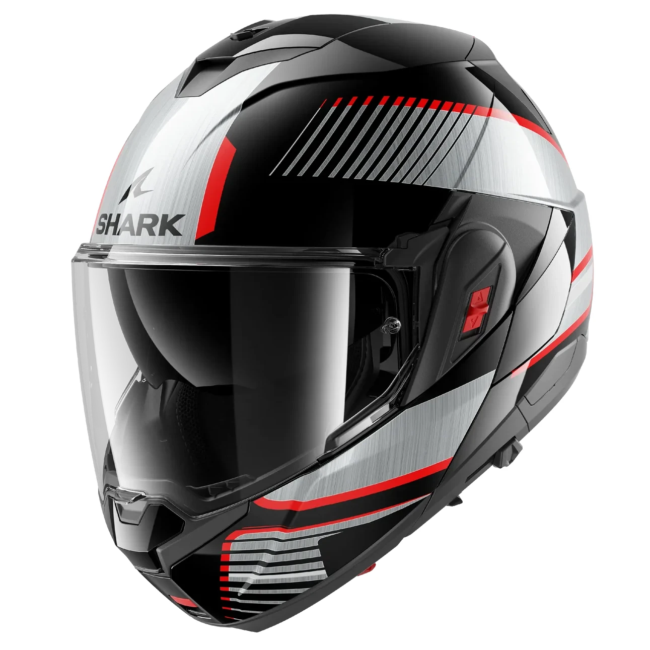 این مدل یک کلاهکاسک مدولار (Flip-back) است، یعنی قسمت جلویی آن میتواند باز و بسته شود تا کاربرد کلاهکاسک هم در حالت تمامصورت (full-face) و هم در حالت open-face (بدون چانه) ممکن شود؛ این ویژگی در سفرهای شهری یا توریستی که نیاز به تهویه بهتر و دید بازتر هست، واقعاً کاربردی است.اصل طراحی «Flip-back» از دو زاویه مهم است: