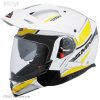 مدل EVO TIDE با ترکیب رنگهای سفید، زرد و مشکی و خطوط پویا، ظاهری مدرن و اسپرت دارد که برای موتورسوارانی که به استایل خود اهمیت میدهند، بسیار جذاب است. طراحی فک جدا این کلاه امکان استفاده در دو حالت تمامصورت و نیمهباز را فراهم میکند، که این ویژگی بهویژه برای موتورسوارانی که در شرایط مختلف آبوهوایی یا مسیرهای طولانی رانندگی میکنند، بسیار کاربردی است. همچنین، ویزر بزرگ در قسمت بالای کلاه، برای محافظت در برابر آفتاب و همچنین شرایط جادهای مختلف ایدهآل است.
