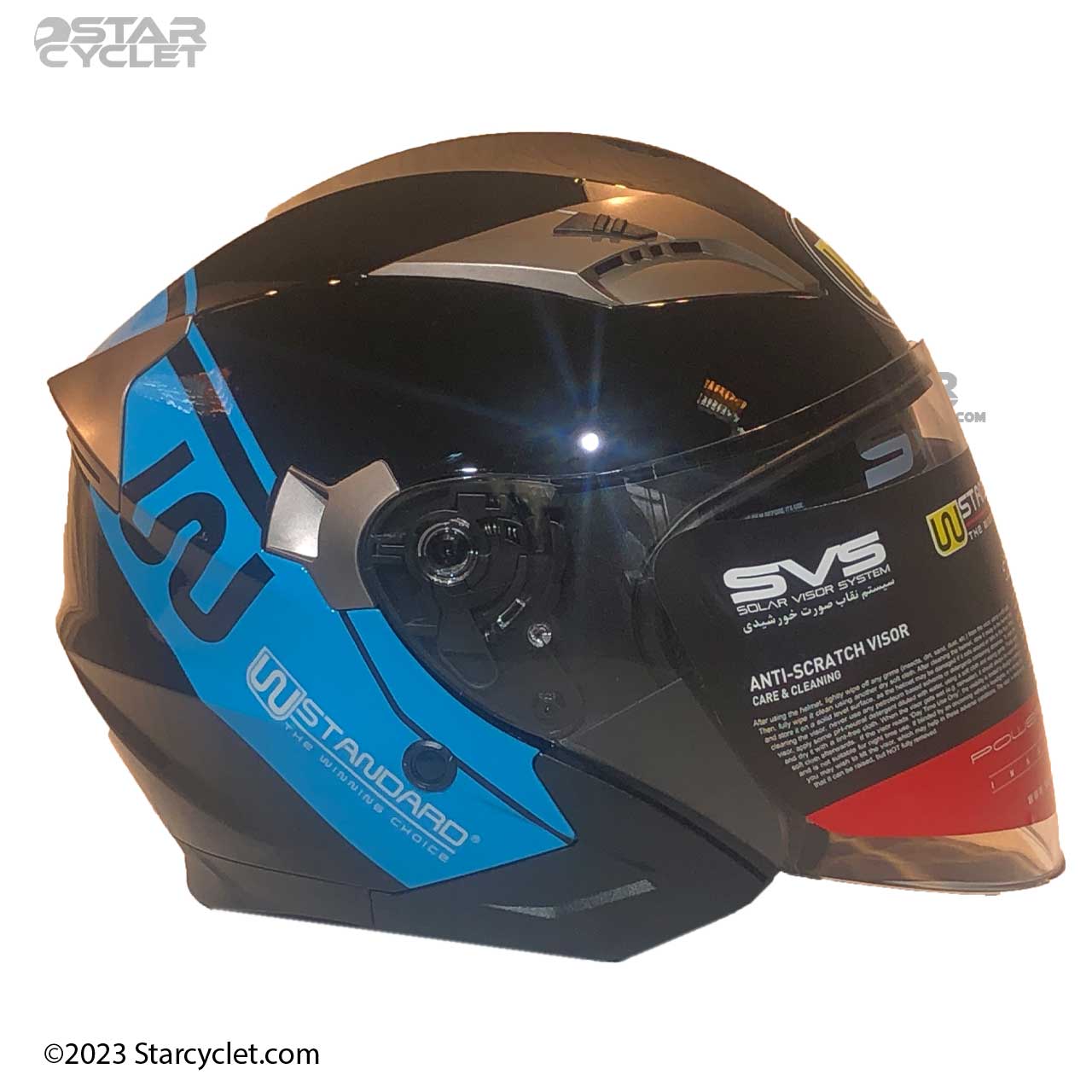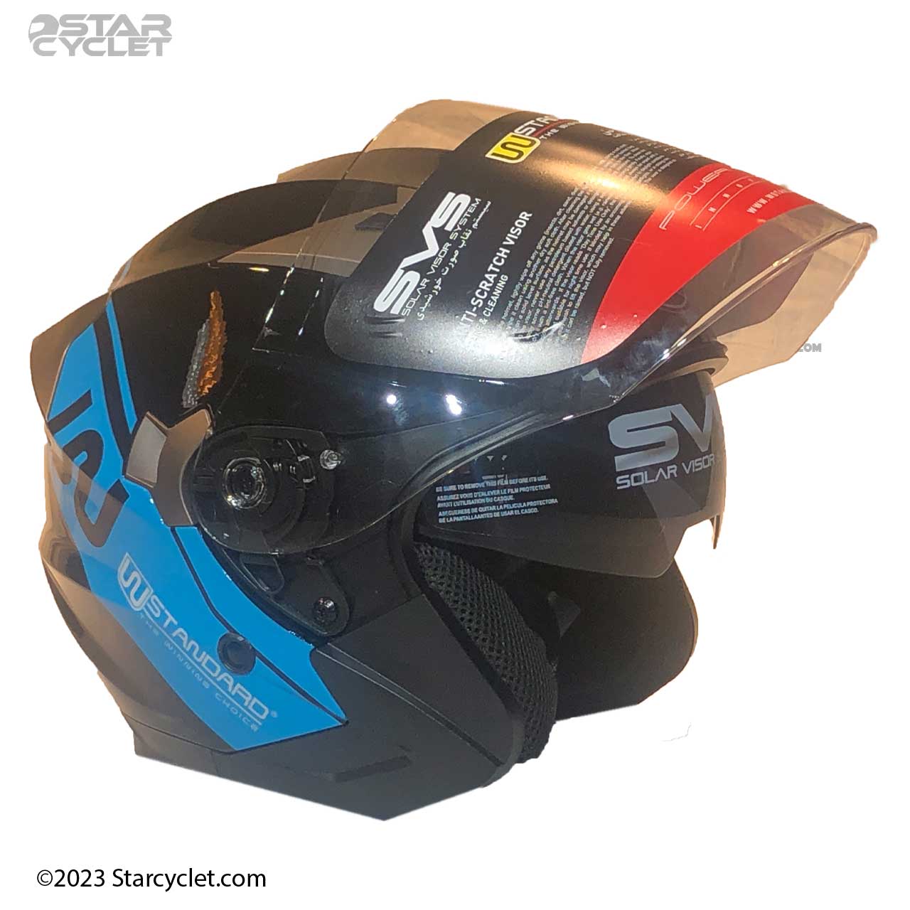 کلاه ایمنی بدون فک دبلیو استاندارد مدل WM BLU-BLK دارای رنگ آبی است و استاندارد DOT دارد.