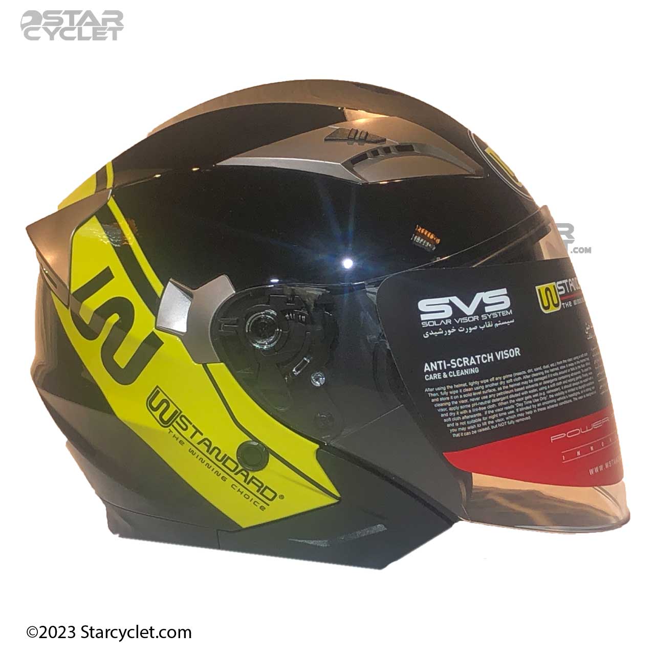 کلاه ایمنی بدون فک دبلیو استاندارد مدل WM YELLO-BLK دارای رنگ زرد است و استاندارد DOT دارد.