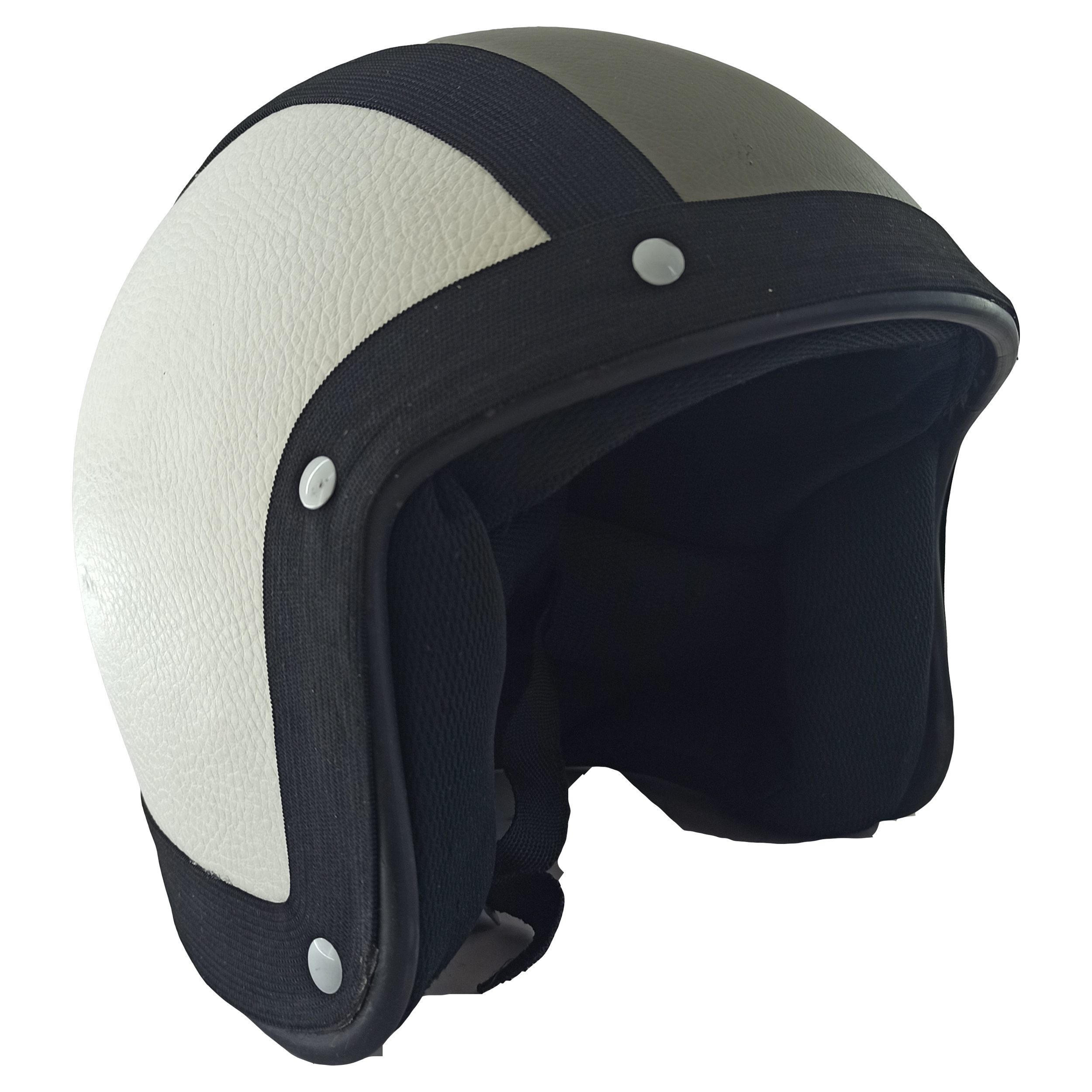 کلاه کاسکت وسپایی مدل چرم طوسی-سفید