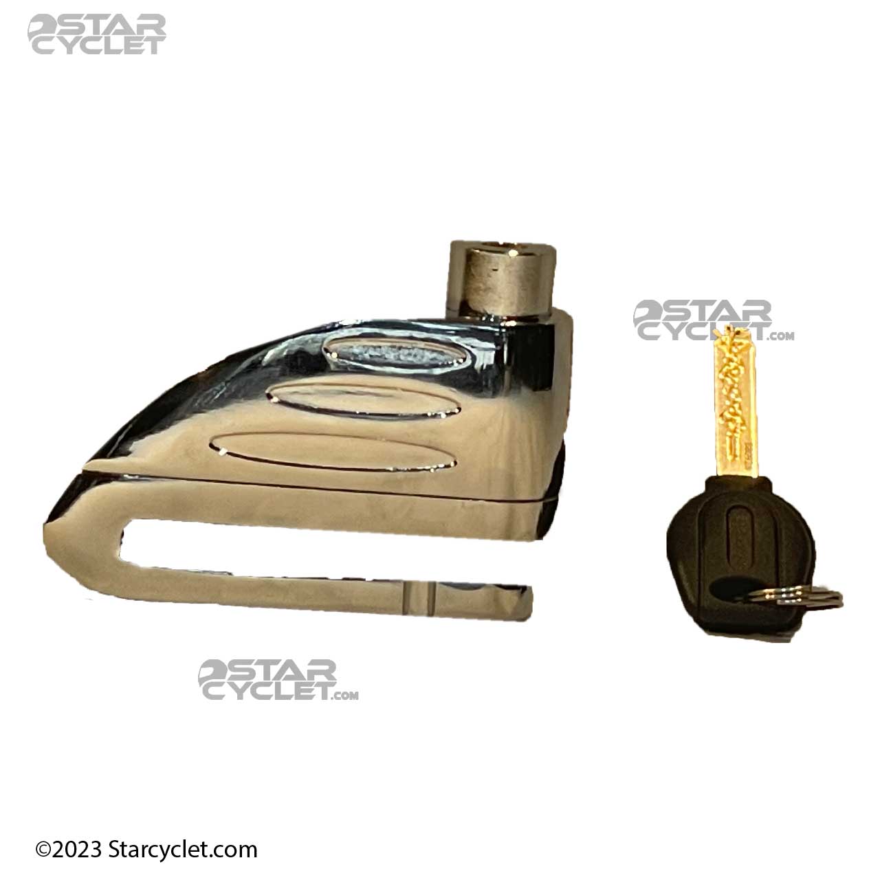 کارکرد اصلی قفل دیسکی آژیردار این است سارق به سرعت و قبل از هیچگونه عملی از کامل بودن امنیت موتورسیکلت شما با خبر شود تا هیچگونه اتفاقی برای موتور نیافتد. برای مثال برای اینکه دزدی سریع انجام گیرد در بسیاری از موارد سارق ابتدا قفل فرمان را میشکند و سپس سریع شروع به روشن کردن موتور میکند و بعد متوجه قفل دیسکی میشود و مجبور میشود موتور را پرت زمین کند و فرار کند. ولی اگر قفل آزیردار موتور داشته باشید پس از ضربه زدن به موتور سارق صدای آژیر میشنود و مجبور میشود فرار کند و موتور شما پرت زمین نمیشود و هیچگونه خسارتی نمیبیند. در حال خاضر تنها با پرت شدن موتور سیکلت حداقل 8 میلیون خسارت میبینید ولی با خرید قفل دیسک آژیردار از این خسارت در امان هستید.