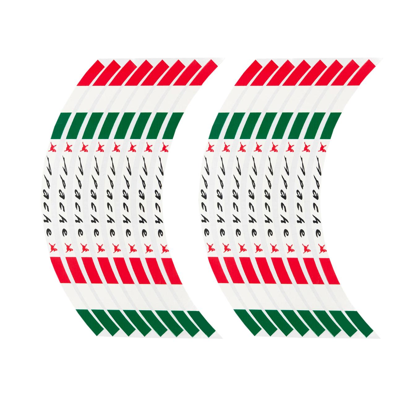 | سایر توضیحات | تعداد کافی برای نصب بر روی دو طرف رینگ جلو و عقب , ضد آب , نصب آسان , چسب مقاوم , قابل شست و شو |