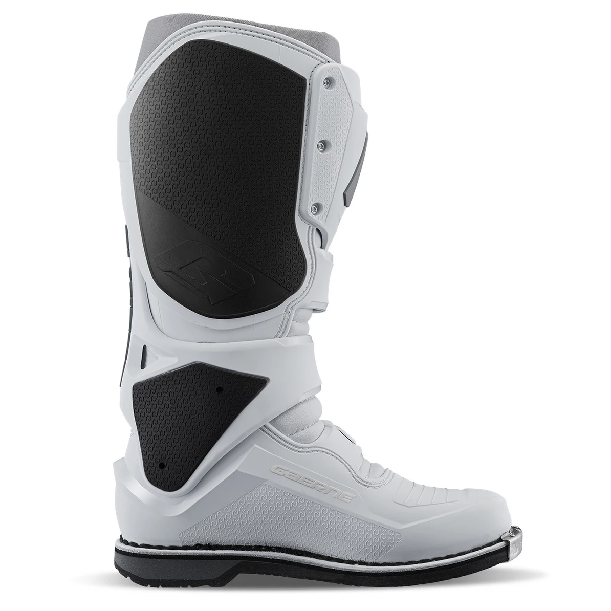 بوت Gaerne SG22 پرچمدار نسل جدید موتوکراس است؛ انتخابی که سوارکاران حرفهای برای رسیدن به سطح قهرمانی سراغش میروند. این بوت نتیجه سالها تحقیق، مهندسی دقیق و وسواس برند Gaerne برای ساخت محصولاتی است که در سختترین شرایط هم، عملکردی بیرقیب ارائه کنند.در قلب این بوت، سیستم فوقپیشرفته Gaerne Dual Stage Pivot System 1.0 قرار دارد؛ مکانیزمی دو مرحلهای با دو محدودکننده حرکتی که از هایپر اکستنشن (کشیدگی خطرناک)، هایپرفلکشن (خمشدن بیش از حد) و حرکات جانبی ناایمن جلوگیری میکند. بهلطف مهندسی جدید در هندسه مفصلها، حرکات بوت بسیار نزدیک به حرکت طبیعی مچ پا شده و بدون کاهش سطح ایمنی، آزادی عمل بیشتری در سواری میدهد.