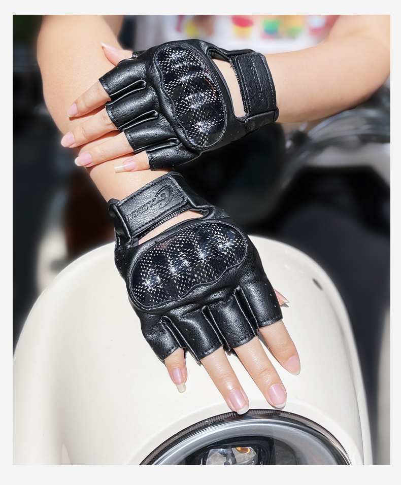 | مشخصات کلی | راحت و قابل تنفس;دارای پروتکشن های فیبر کربن با مقاومت بسیار بالا;دارای پد ضد ضربه و ضد لغزش در قسمت کف دست برای محافظت از ضربه و سر نخوردن دست بر روی دسته گاز |