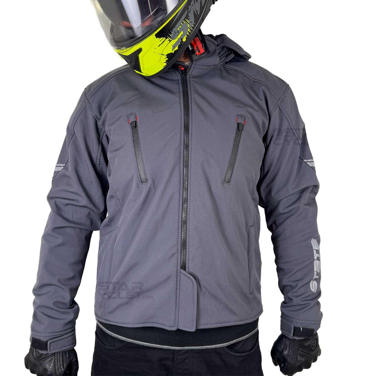 کاپشن دارای یقه بلند و کلاه قابل تنظیم است که محافظت بیشتری در برابر باد و باران فراهم میکند. همچنین پدهای محافظ در نواحی حساس شانهها و آرنجها از ایمنی موتورسوار در هنگام تصادفات یا زمین خوردن جلوگیری میکند.
